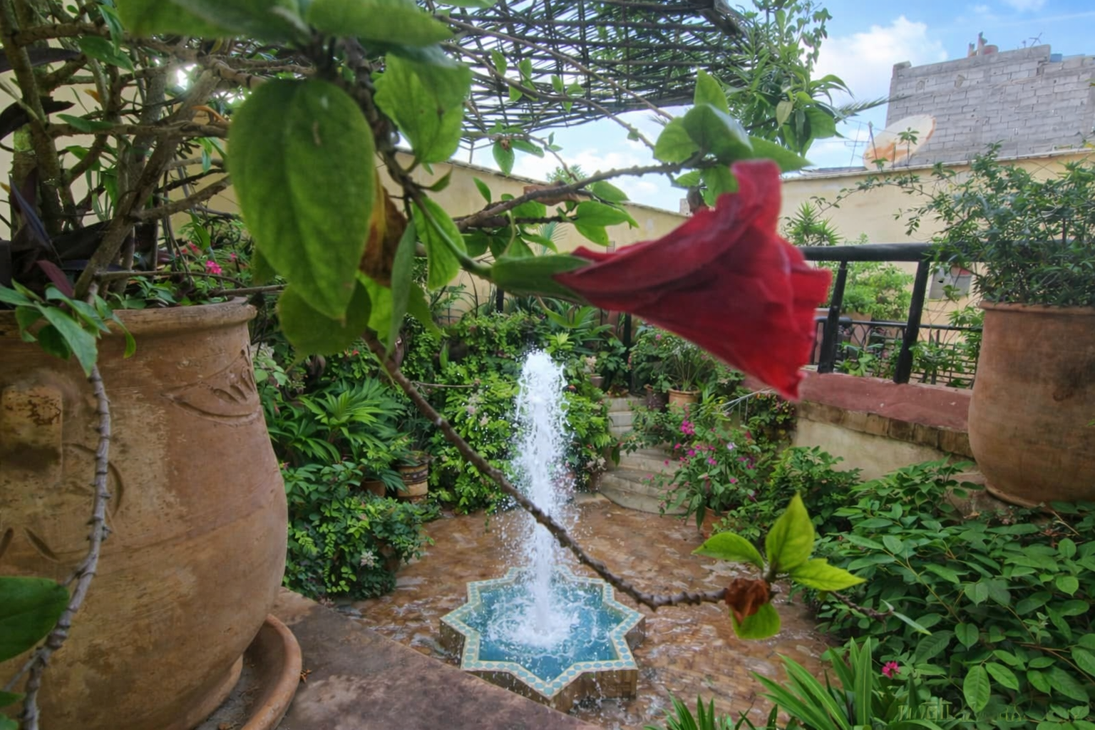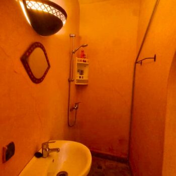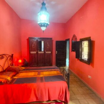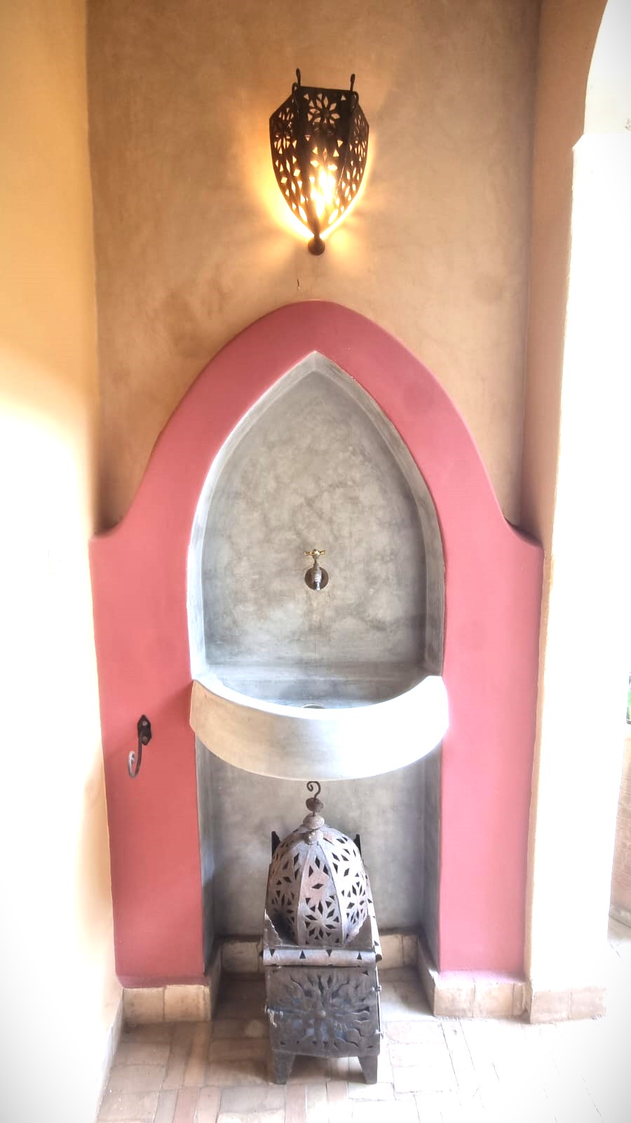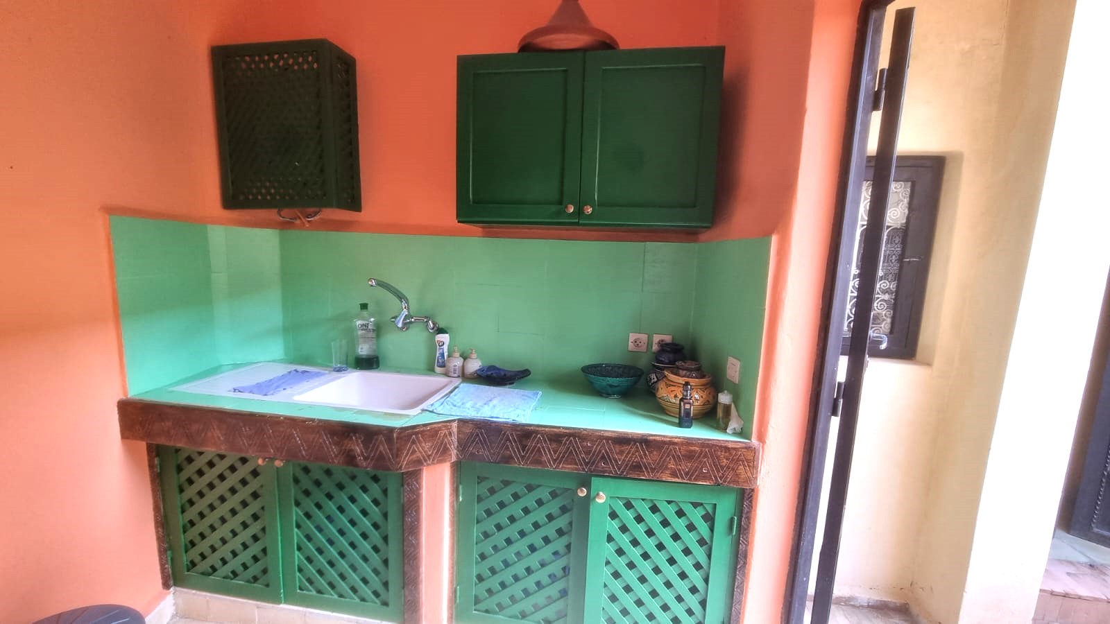 La vaste cour intérieure, agrémentée d’une charmante fontaine Beldi, apporte fraîcheur, lumière et sérénité à l’ensemble. Une cuisine entièrement équipée ainsi qu’un WC indépendant viennent compléter ce niveau.