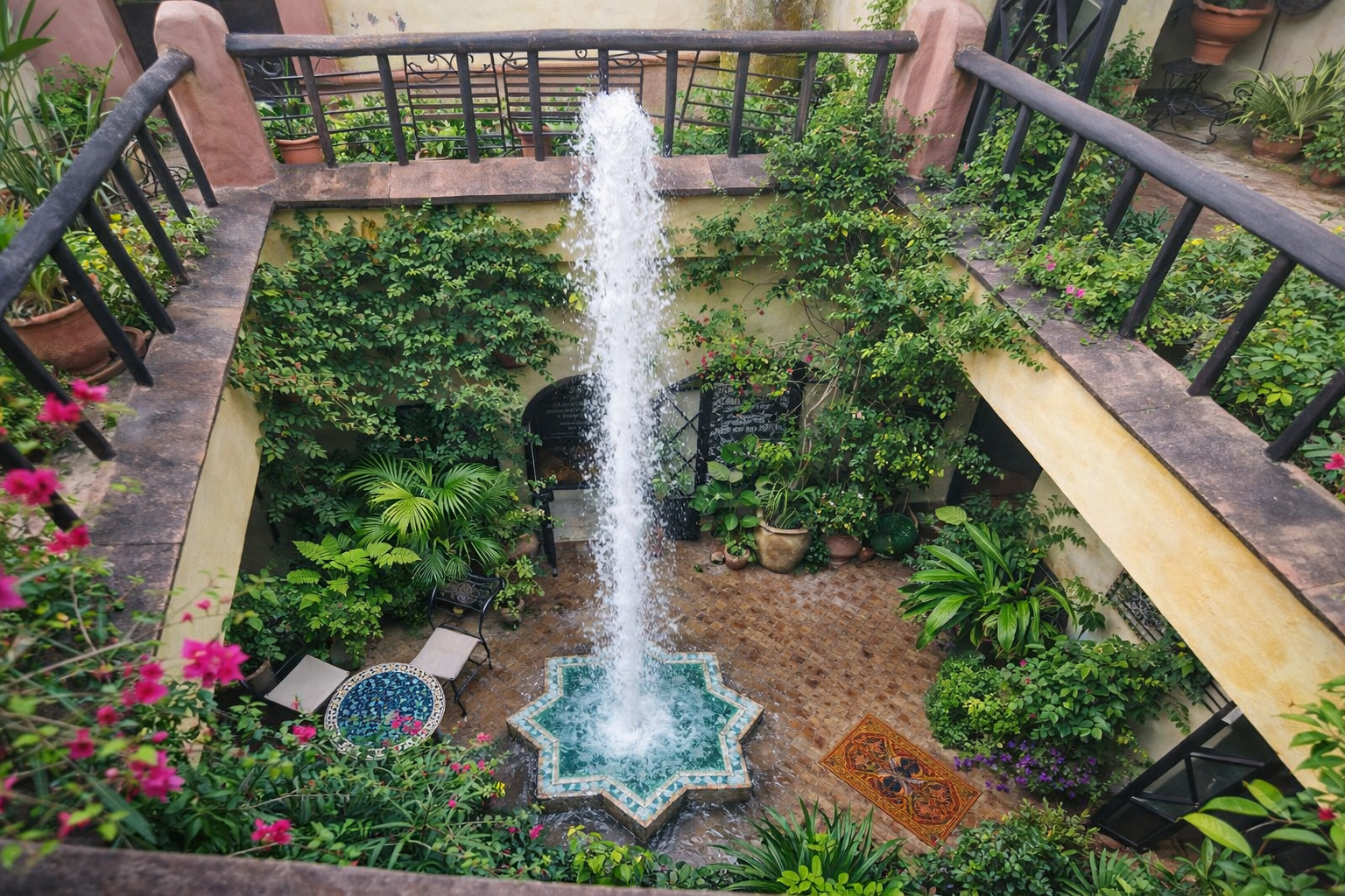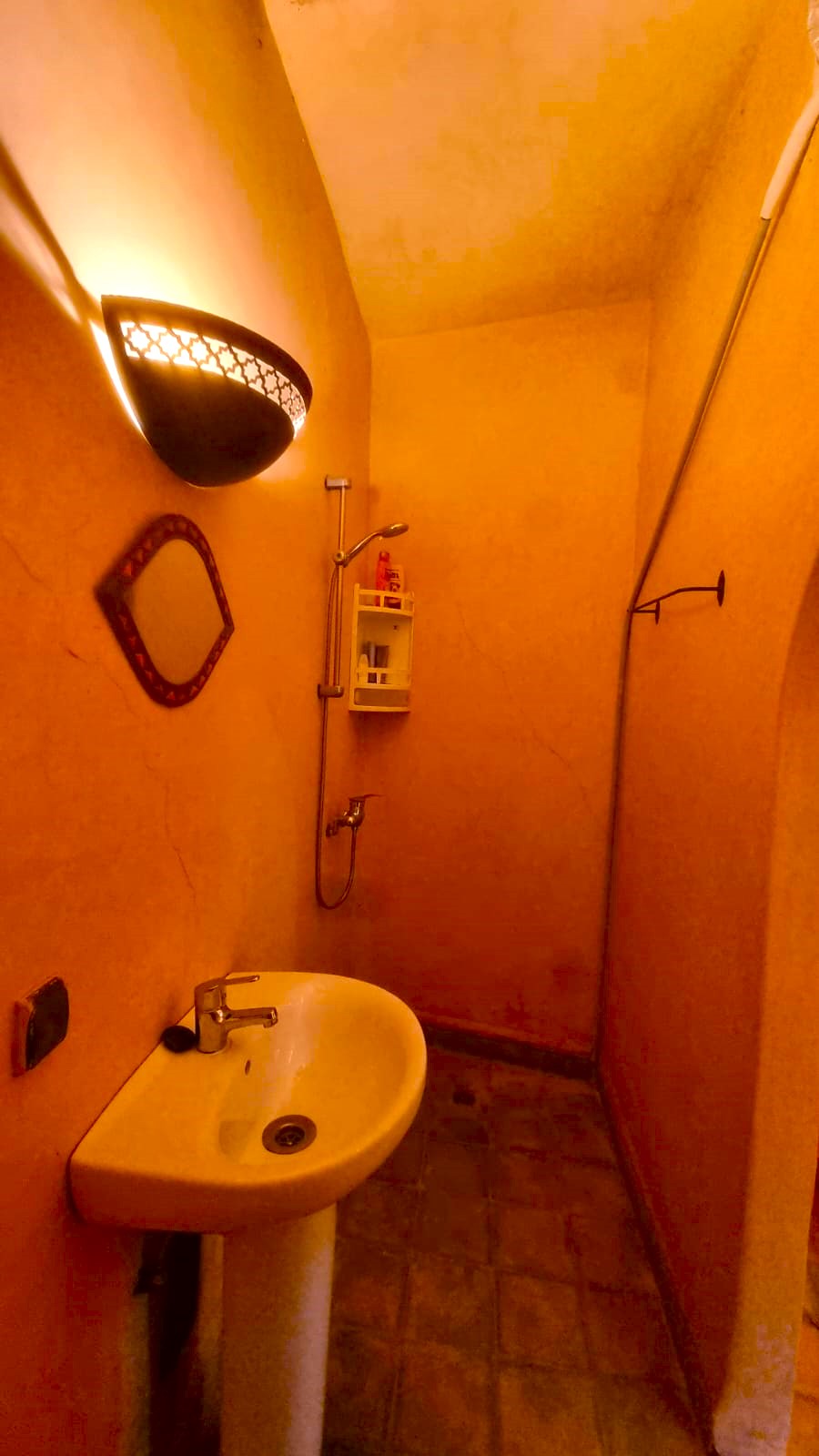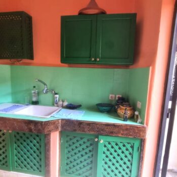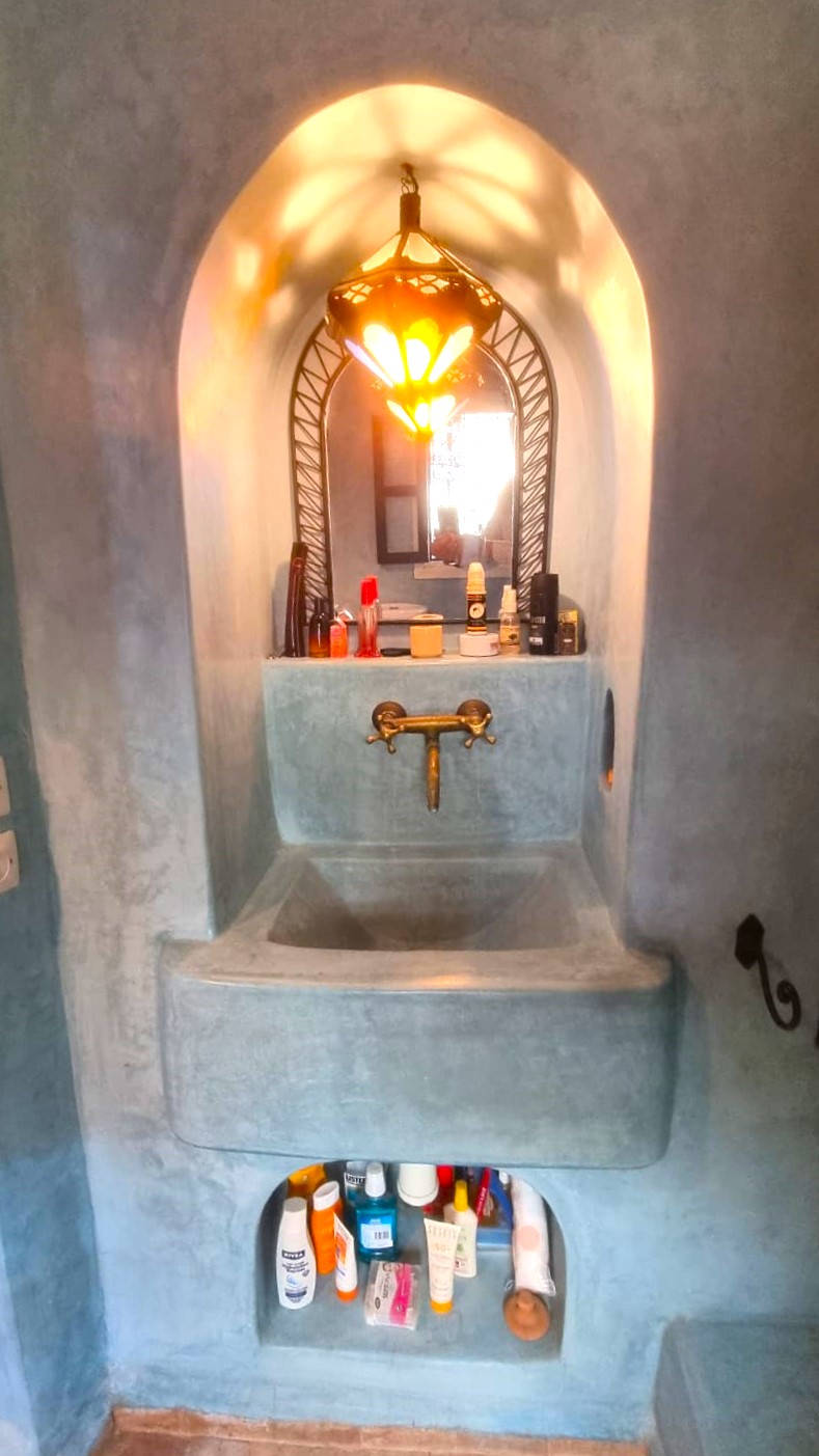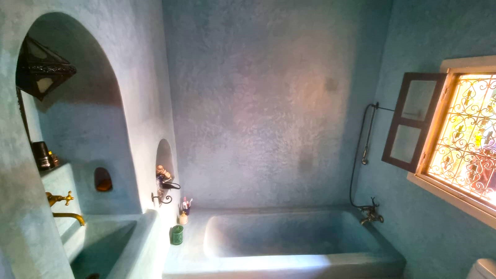 La vaste cour intérieure, agrémentée d’une charmante fontaine Beldi, apporte fraîcheur, lumière et sérénité à l’ensemble. Une cuisine entièrement équipée ainsi qu’un WC indépendant viennent compléter ce niveau.