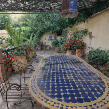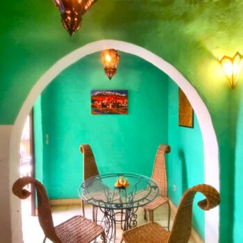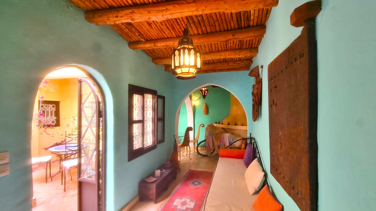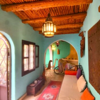 Idéalement situé à proximité immédiate de toutes les commodités, ce riad de caractère, construit en pisé, a été entièrement rénové avec beaucoup de soin dans le respect de l’architecture marocaine. Sa décoration raffinée, inspirée de l’art de vivre berbère, lui confère une atmosphère chaleureuse, intime et pleine d’authenticité.