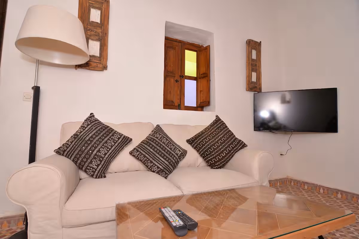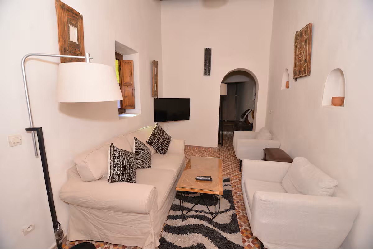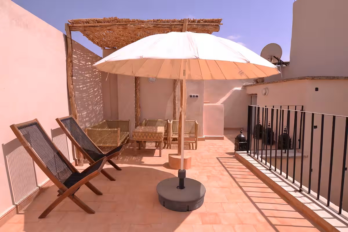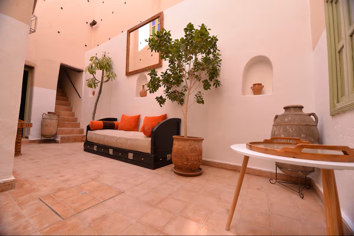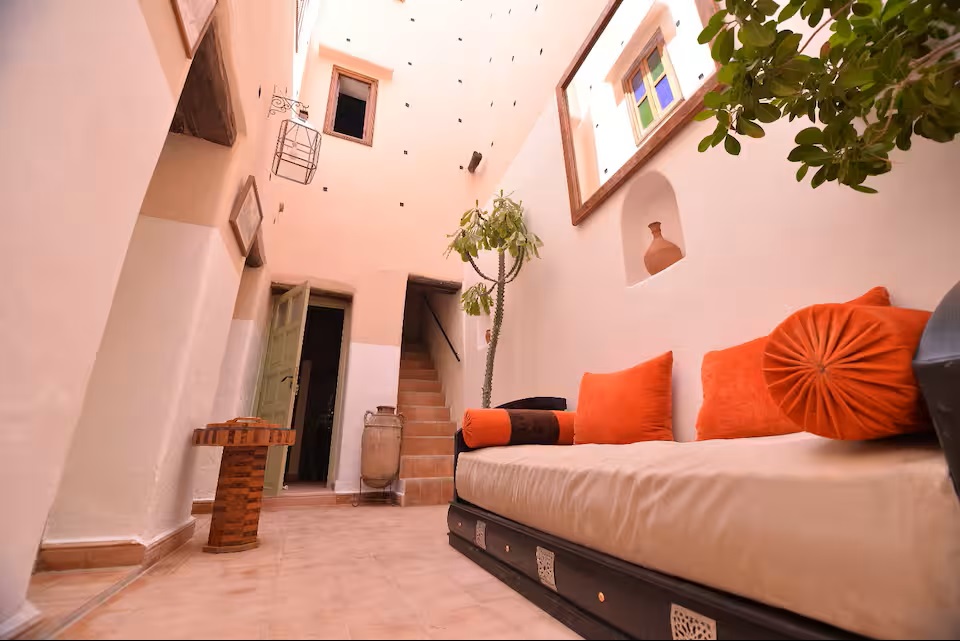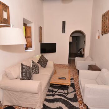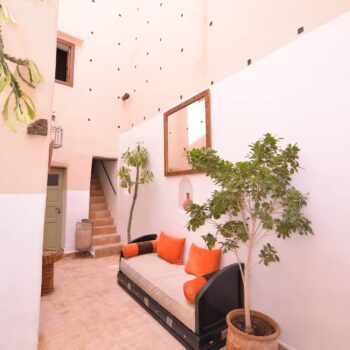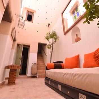 A quelques pas de toutes les commodités en pleine médina de Taroudant et à quelques mètres des cafés et restaurants, Parking du centre-ville et de ses commerces,, Venu découvrir un très beau Riad R+1+Terrasse ,Titré pour un achat sécurisé devant le notaire, d’une superficie de 125 M2 couvert, le Riad est construit en pisé entièrement rénové et décoré avec un goût Berbère Traditionnel, Ce bien vous propose Rez-de-chaussée ayant une chambre à coucher équipée, Salone, Cuisine, SDB et Coure , au 1er étage : une chambre à coucher équipée, Salon marocain Beldi avec cheminée et terrasse avec mini barre, Ce bien est proche de toutes les communautés nécessaires : Banques, pharmacies, établissements scolaires, magasins, hôpitaux, librairie centre commercial, supermarché, gare et transports en commun…
