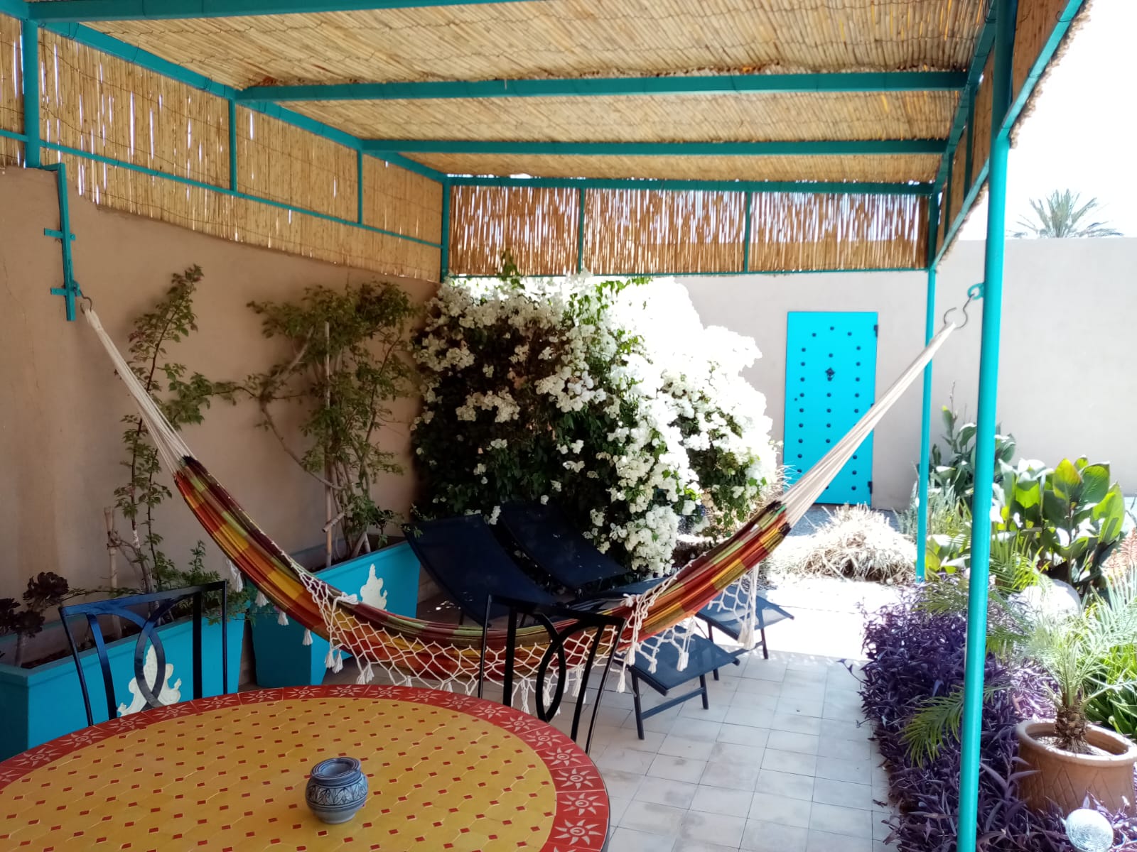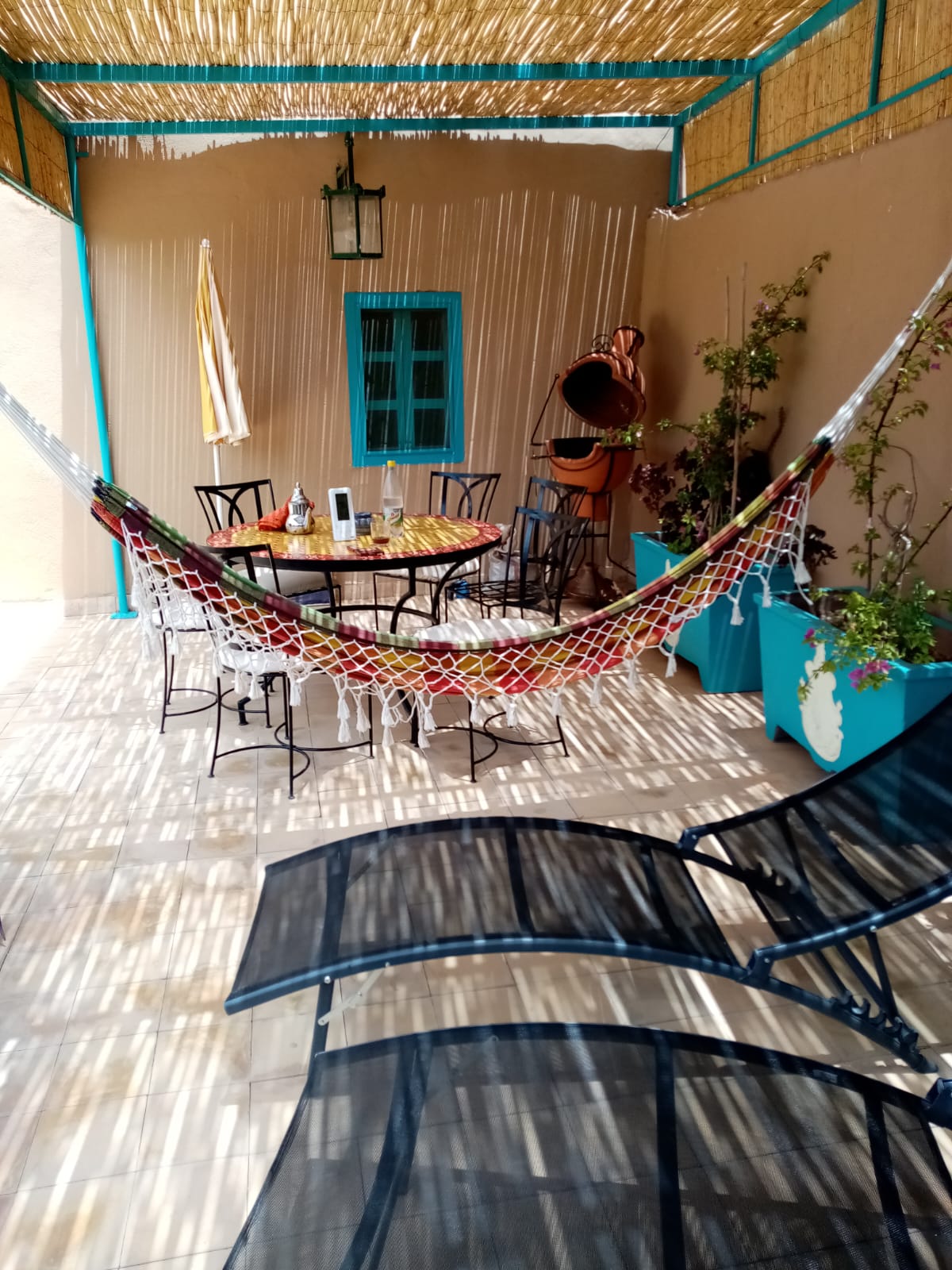 Très beau Riad Beldi dans un petit village très calme, authentique. Seulement 15 km de Taroudant et 45 km de l’aéroport d’Agadir, idéal aussi pour faire chambres hôtes, et restauration. Le Riad fait 545M2 et 250M2 de surface habitable avec 2 beaux patios, Jardin d’agrément avec cuisine d’été, jacuzzi de 1,5m de profondeur, 4 chambres suites parentales avec climatisation et grande salle de bains, une grande cuisine toute équipée ,1 salon Beldi ,1 salon moderne , 1 petit salon détente musique 🎶, 1 accueil à l’entrée, et 1 accueil pour les deux patios. Caméras plus WiFi et garage.
