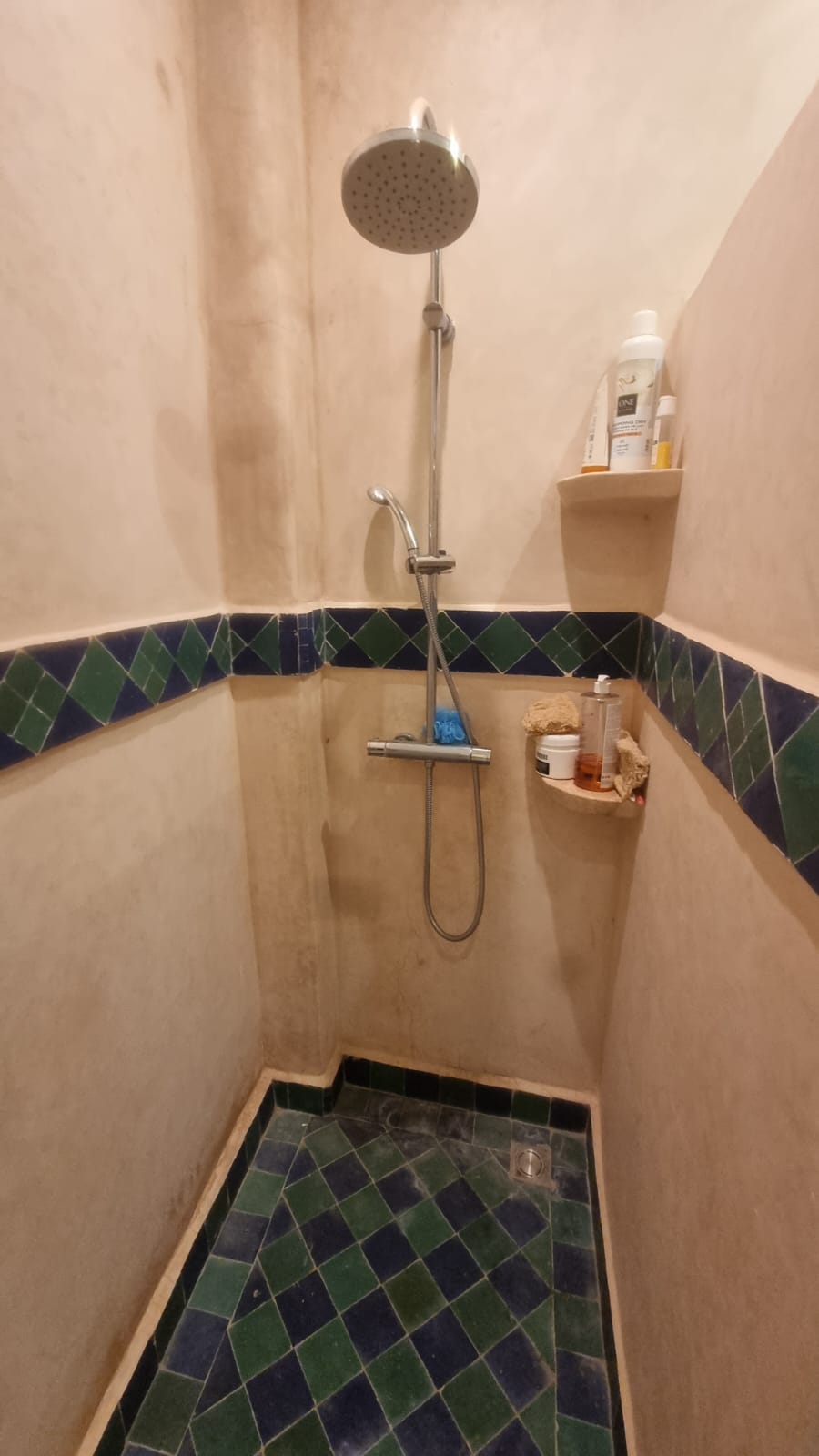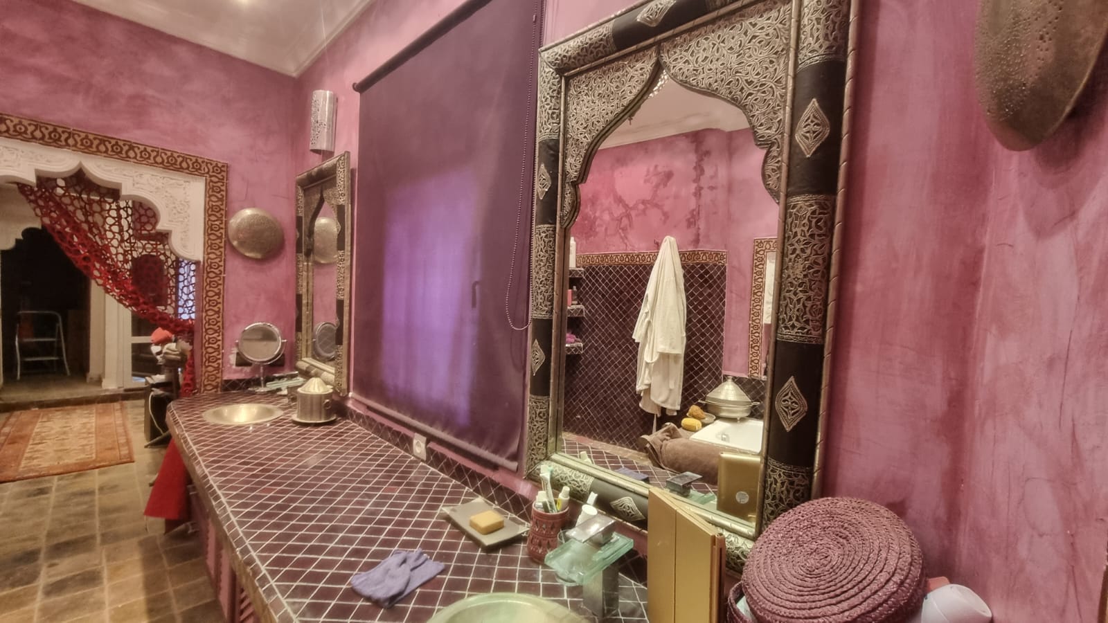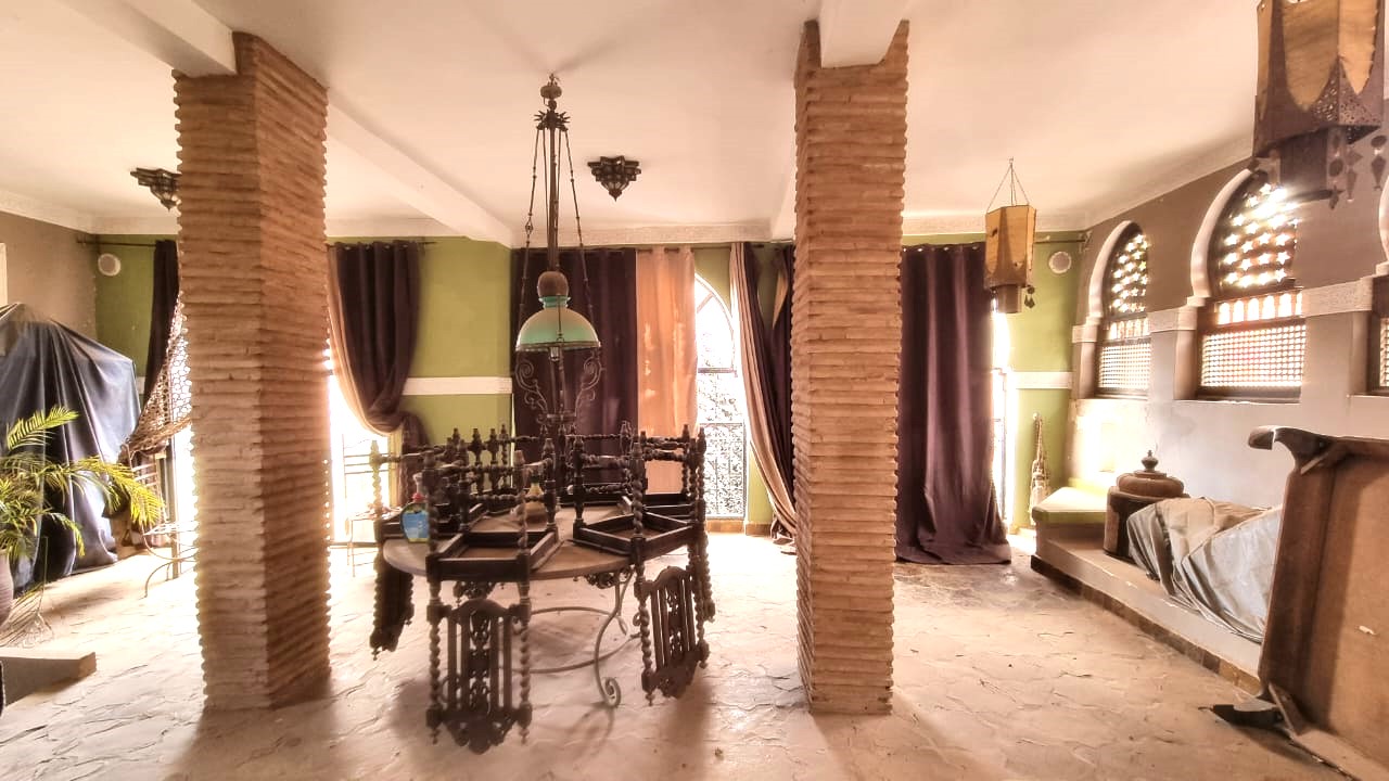 La surface Habita est de 500M2, Il s’agit de 3 Riads anciens bâtisses de construction traditionnelle. Se compose trois ailes communiqués entres eux: