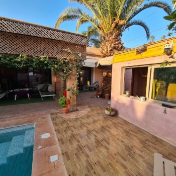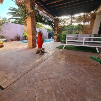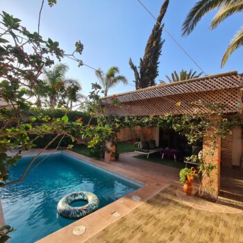 À quelque km de la Mer Agadir à vendre Superb villa d’une Surface de 80M2 sur un terrain de 235M2 Environ 200m² supplémentaires bord de lac qui ne sont absolument pas accessibles aux personnes extérieures à la maison (c’est réellement le cas – fermé par des végétaux) avec une faces donnes sur la piscine et jardin privés, 1 chambre avec SDB…possibilité 2 chambres.. cabanon… , cabanon de jardin, piscine privée et éclairage nocturne, vue sur l’Atlas, sans vis à vis. La villa vendre entièrement meublée et équipée. Ayant travaillé dans l’aménagement paysager et construction… piscine le terrain ne comporte de nombreux aménagements atypiques et esthétiques… une cabane construite à partir de bois traités classe 4 en provenance de France donc imputrescibles et qui ne nécessiteront jamais d’entretien