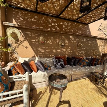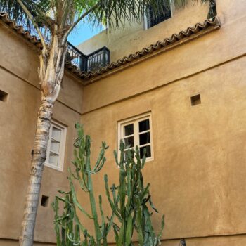 Le moucharabieh : En cèdre en ébène ou en acajou, le moucharabieh est un élément typique de l’ habitat marocain .cet écran ajouté est composé de baguette de bois tourné, sculptées et entrecroisées, laissant apparaître de petites ouvertures octogonales ou étoilées. Appliqué aux fenêtres, il préserve un espace d’intimité et d’ombre bienfaitrice, tout en laissant passer l’air, quand la chaleur est accablante. Autrefois, il permettait aux femmes d’observer sans être vues.